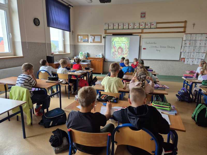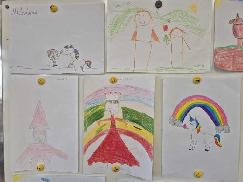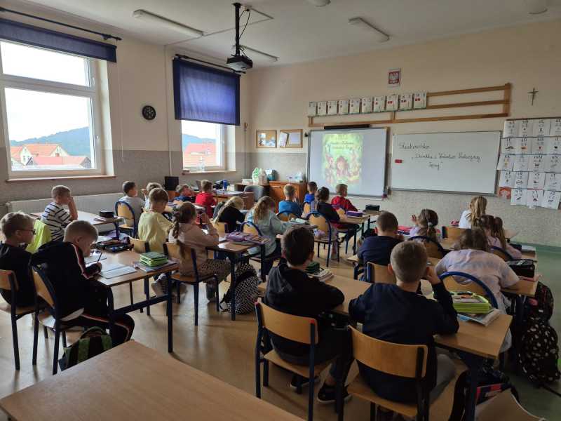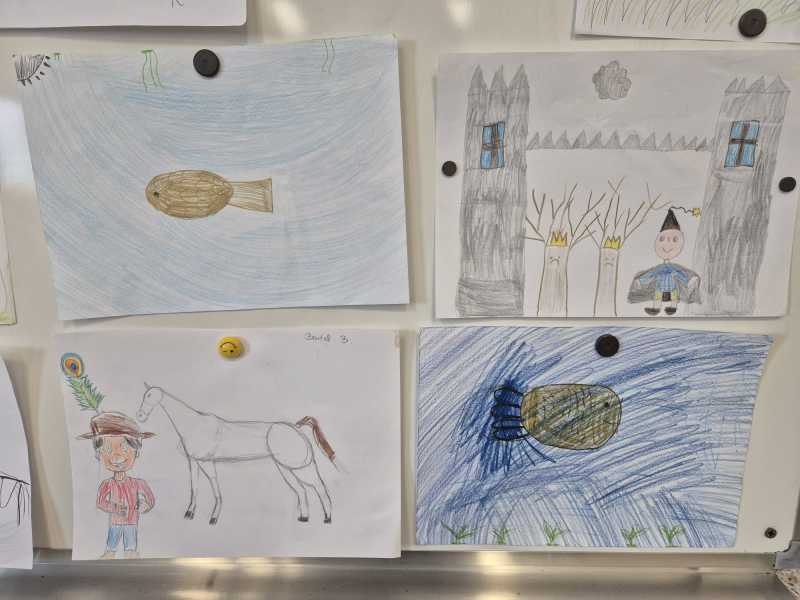 Na lekcji koła regionalnego kl. 2b przeniosła się do bajkowej krainy Gór Sowich. „Dorotka i Królestwo Podwójnej Tęczy – O czarodzieju Helimberku i księżniczce Hihildzie” to niesamowite słuchowisko autorstwa Katarzyny Strojny, pod patronatem Biblioteki w Bielawie. Na podstawie tego słuchowiska powstały nietuzinkowe prace plastyczne.