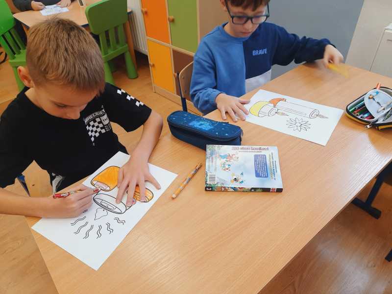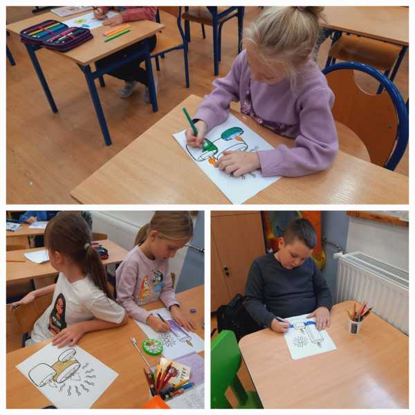 W ramach zajęć Świetliki kolorowały rysunki związane z dniem Wszystkich Świętych.