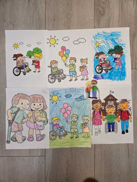 Uczniowie przygotowali również piękne rysunki, które pokazały, że każdy z nas może tworzyć świat bardziej otwarty i życzliwy. ❤️