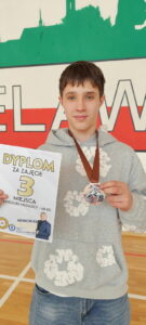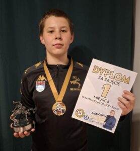Stanisław Kraśnicki z kl. 7c również świetnie zaprezentował się podczas Pierwszego Memoriału Antoniego Żołny w Kostrzynie nad Odrą, zajmując 3. miejsce w kategorii młodzików – 68 kg.