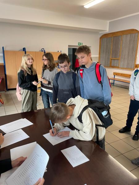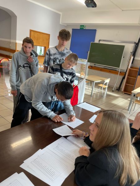 W dniu 26 września 2025 r. w naszej szkole odbyły się demokratyczne wybory do Samorządu Uczniowskiego. Było to dla całej społeczności szkolnej bardzo ważne wydarzenie, w którym uczniowie świadomie dokonują wyboru swoich przedstawicieli na cały rok szkolny. Wybory były poprzedzone kampanią wyborczą. Kandydaci do Samorządu przygotowali bardzo ciekawe i oryginalne plakaty przedstawiające najważniejsze punkty swojego programu. Głosowanie było tajne. Każdy uczeń naszej szkoły mógł oddać głos na swojego kandydata na przygotowanych kartach wyborczych. Nad całością wyborów czuwały panie: Anna Zakrzewska i Natalia Sieroń. Na nich spoczywała odpowiedzialność za prawidłowy przebieg i zachowanie tajności głosowania.